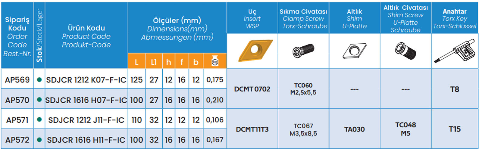 • usable with DCMT 0702 Indexable Inserts